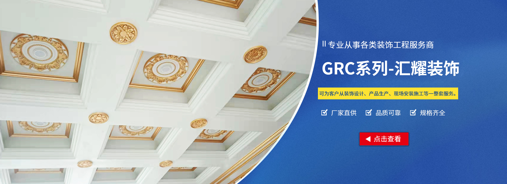 可為客戶從裝飾設計、產品深化設計建模、產品生產、現場安裝施工等一整套服務 鹽城匯耀裝飾工程有限公司主要從事GRG異型吊頂、FRP雕塑、GRC構件、假山水泥雕塑制品、古建筑熒光彩繪、庭院設計施工裝飾工程。
